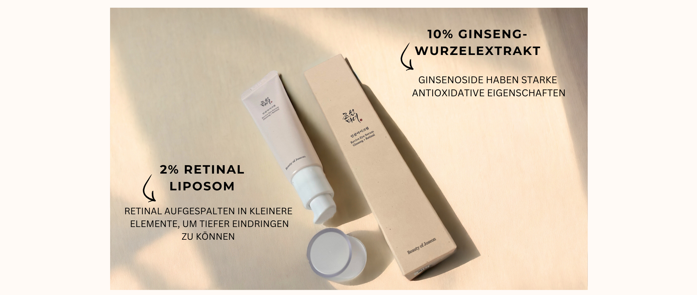 Ginseng wird seit über 2000 Jahren in der traditionellen koreanischen Medizin verwendet und ist dafür bekannt, die Hauternährung und den Stoffwechsel zu verbessern, indem es die Blutzirkulation verbessert. Es enthält Ginsenoside, auch Ginseng-Saponine genannt, biologisch aktive Verbindungen mit starken antioxidativen Eigenschaften.