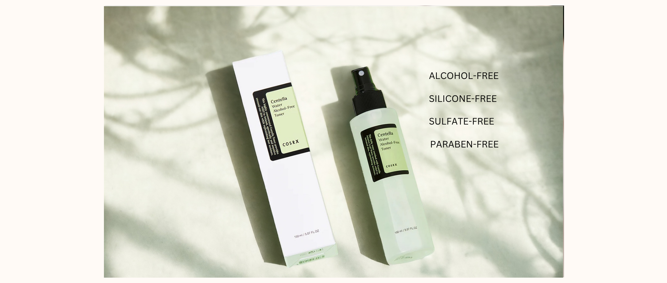 Watery, spray type toner provides relief to irritated and sensitive skin and calms redness. COSRX kept the ingredient list short and simple and excludse all the unnecessary ingredients that might irritate the skin.
