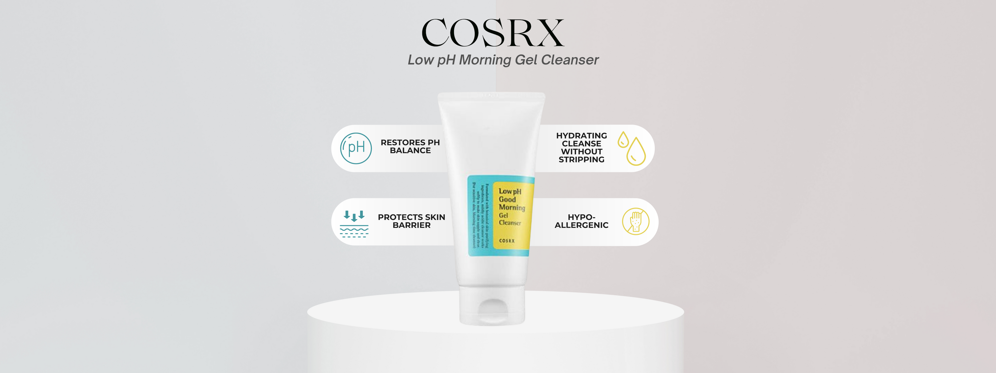 The COSRX Low pH Good Morning Gel Cleanser is an ultra-gentle cleanser. The gel-like formulation lathers up softly, when in contact with water and has a subtle Tea Tree scent. Slightly acidic pH level restores the skin's optimal pH level (4,7-5,8 pH), protecting the skin from outer irritants. BHA is responsible for gentle exfoliation, resolving blackheads and reducing the appearance of pores. This formulation with tea tree oil also deeply cleanses the skin from dirt and excess oil.