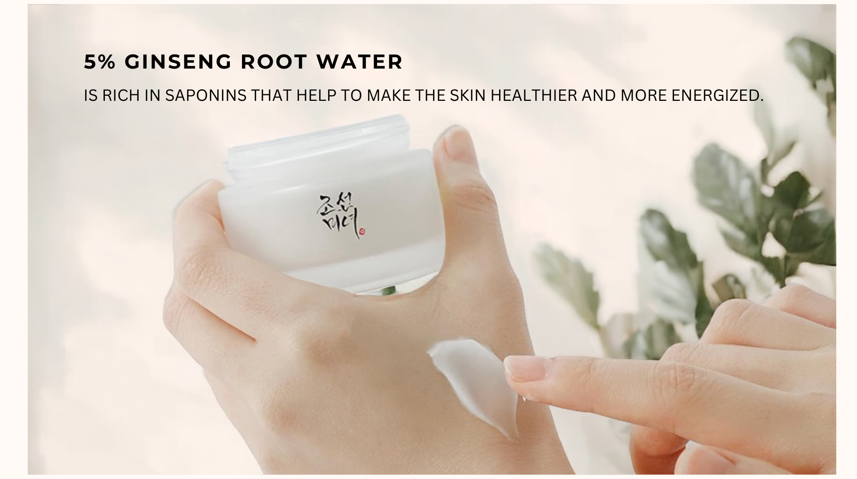 Ginseng is the most important herbal ingredient in Korean history. In the Joseon Dynasty, it was called 'Shincho', meaning herb from the gods. The rich saponin contained in ginseng helps to make the skin healthier and more energized.