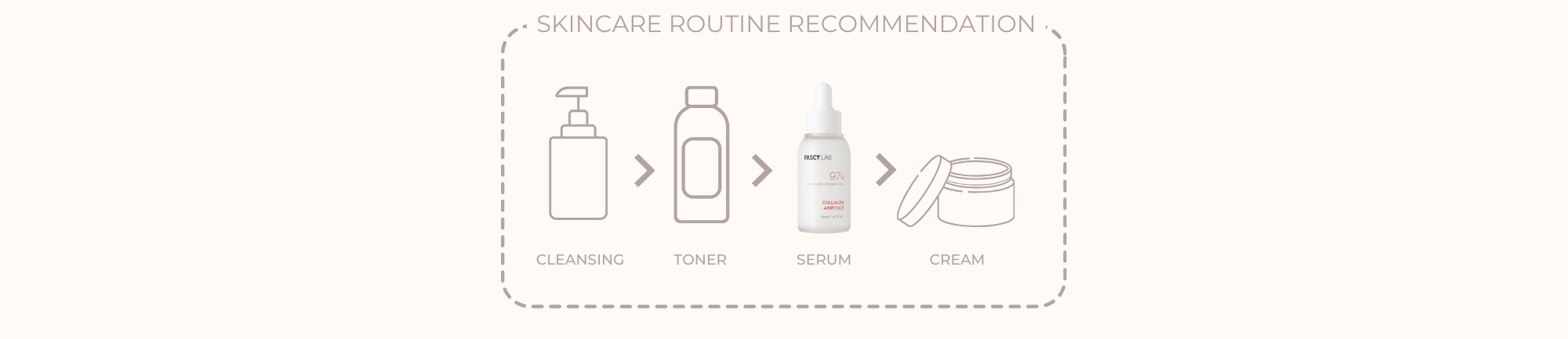 FASCY Lab Collagen Ampoule – rejuvenating collagen serum, promotes intensive skin hydration, effective in the fight against age-related changes in the epidermis. This serum is enriched with pure hydrolyzed collagen (97%), which effectively restores skin elasticity by providing smoothness, eliminating dehydration and the appearance of fine lines caused by dry skin.
