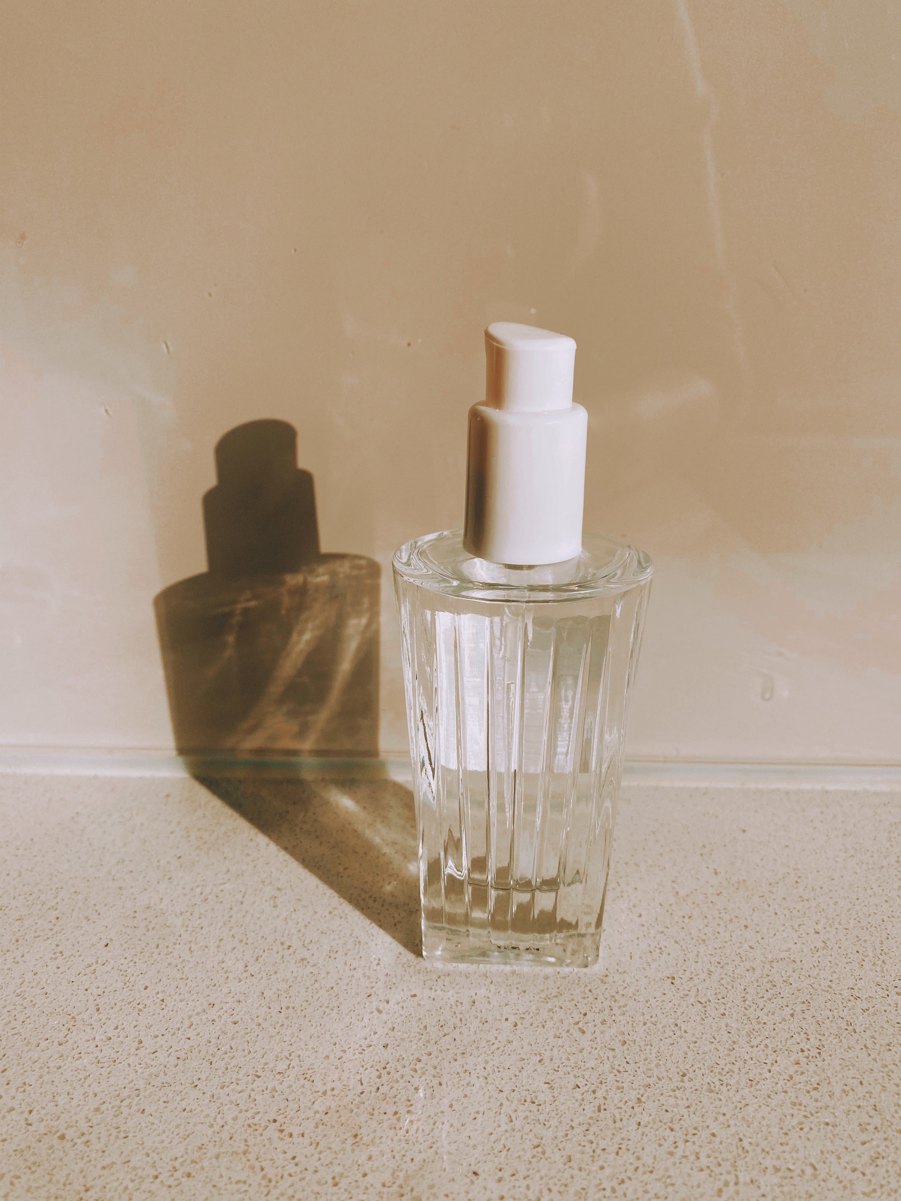 - Dispense 1-2 pumps onto clean fingertips, spread the liquid between fingertips of both hands and gently pat onto face and neck.